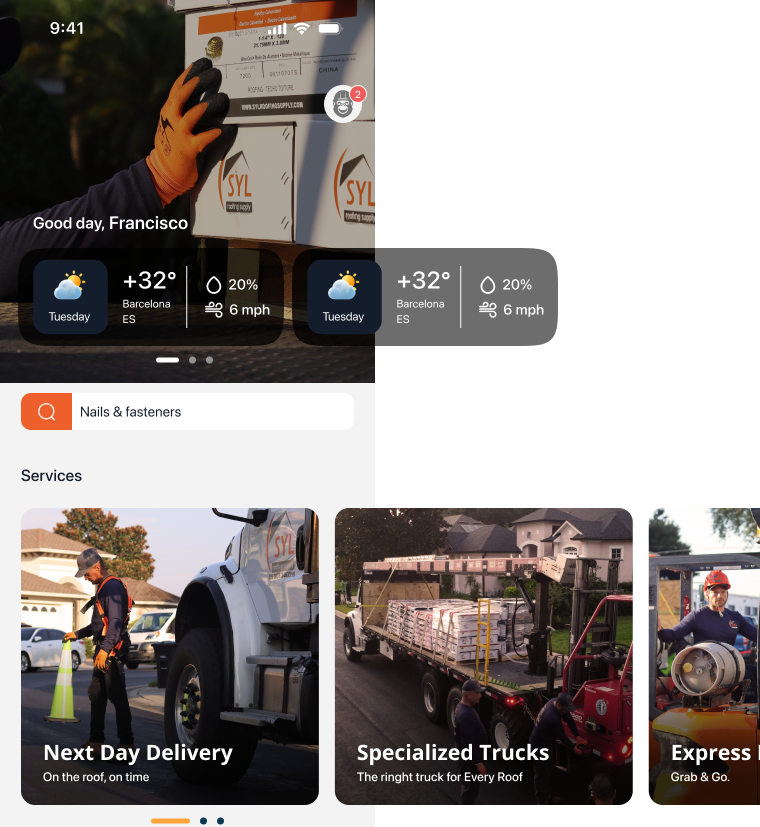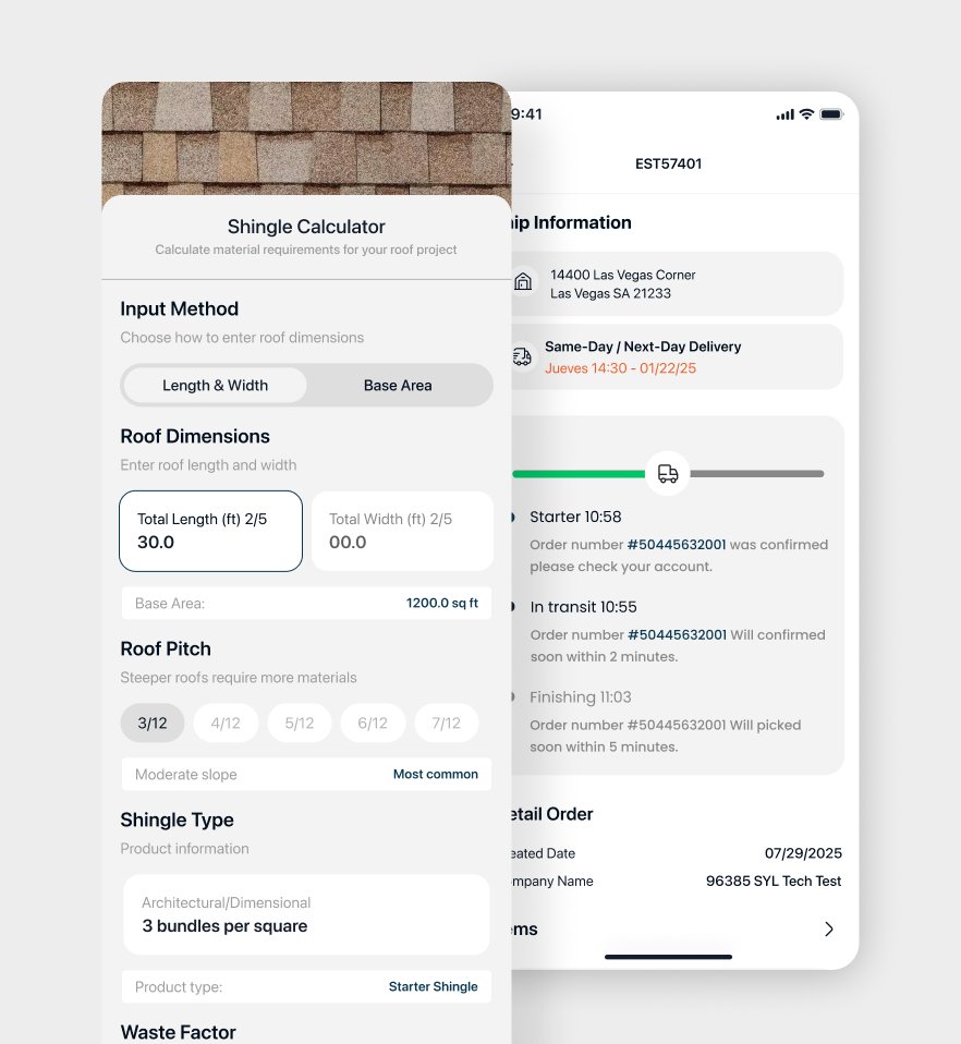 RoofMate una aplicación B2B/B2C que permite a contratistas y constructores cotizar materiales, gestionar facturas y rastrear entregas en tiempo real, eliminando las esperas y optimizando su flujo de trabajo.